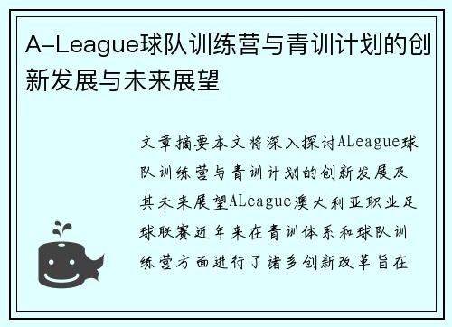 本文将深入探讨A-League球队训练营与青训计划的创新发展及其未来展望。A-League(澳大利亚职业足球联赛)近年来在青训体系和球队训练营方面进行了诸多创新改革,旨在为澳大利亚足球未来培养更多有潜力的球员,并提升整体联赛的竞技水平。文章将从四个主要方面进行详细分析:一是A-League青训体系的现状与改革进程;二是科技和数据分析在训练中的应用及其对球员发展的促进作用;三是国际化与本土化的平衡及其对青训的影响;四是A-League青训计划对未来澳大利亚足球的贡献与挑战。通过对这些方面的分析,本文展望了A-League球队训练营与青训计划的未来发展方向及其对澳大利亚足球生态的深远影响。